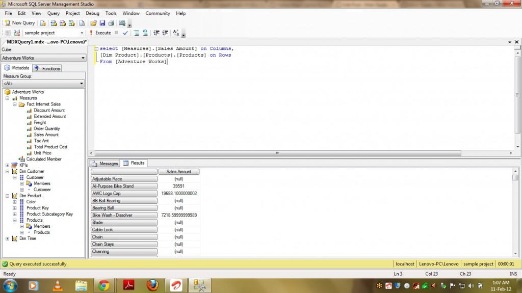 The position starts from 0 and it can be continued as the cube database data is MULTI dimensional. MDX query is capable of returning data in more than two dimensions but our systems doesn’t support it. As our systems support only up to two dimensions, our MDX queries will stick to two AXIS only. For example, Axis(0) returns the COLUMNS axis, Axis(1) returns the ROWS axis, and so on. The Axis function cannot be used on the filter axis. The Axis numbers should be in order. You cannot use AXIS(1) without defining AXIS(0). PFB the sequence –
