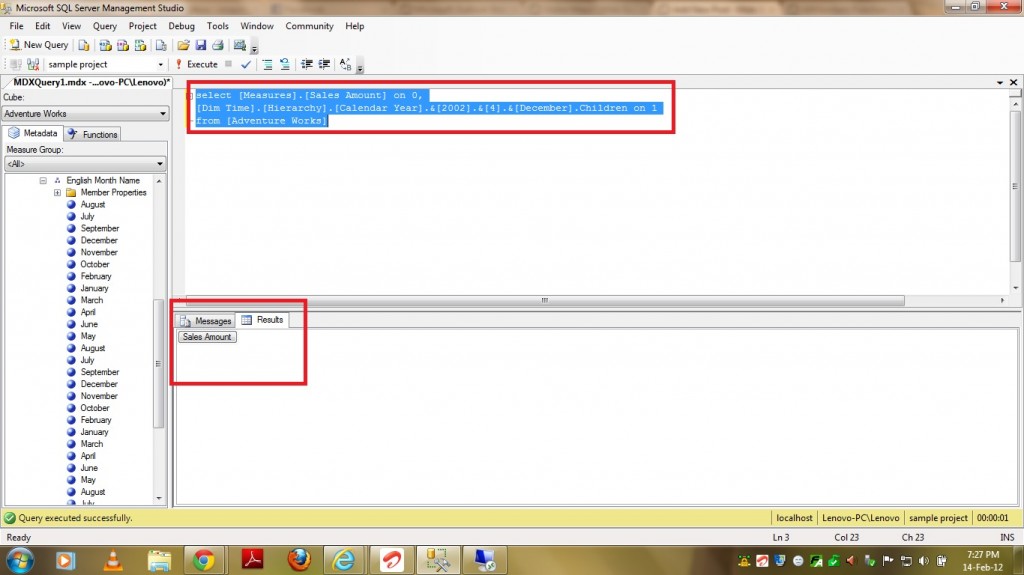 Now in the below Example I am passing Member from “English Month Name” level of the hierarchy and as this is the last level of the hierarchy, there won’t be any children and hence it returns empty result set as shown in the below screenshot.