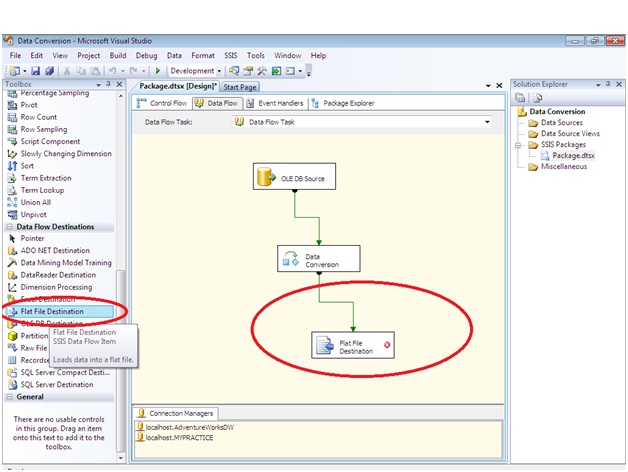 • Open a new project and drag a Data Flow task from toolbox in Control Flow.