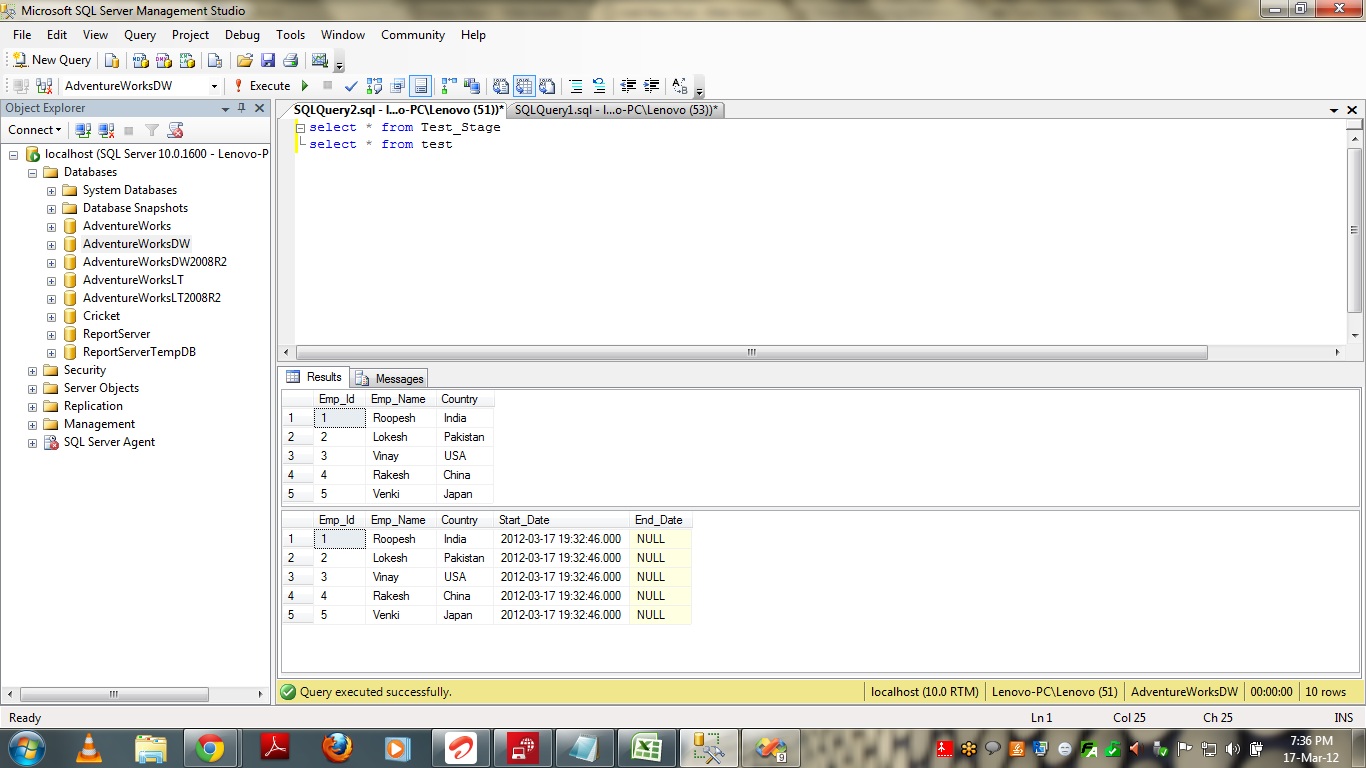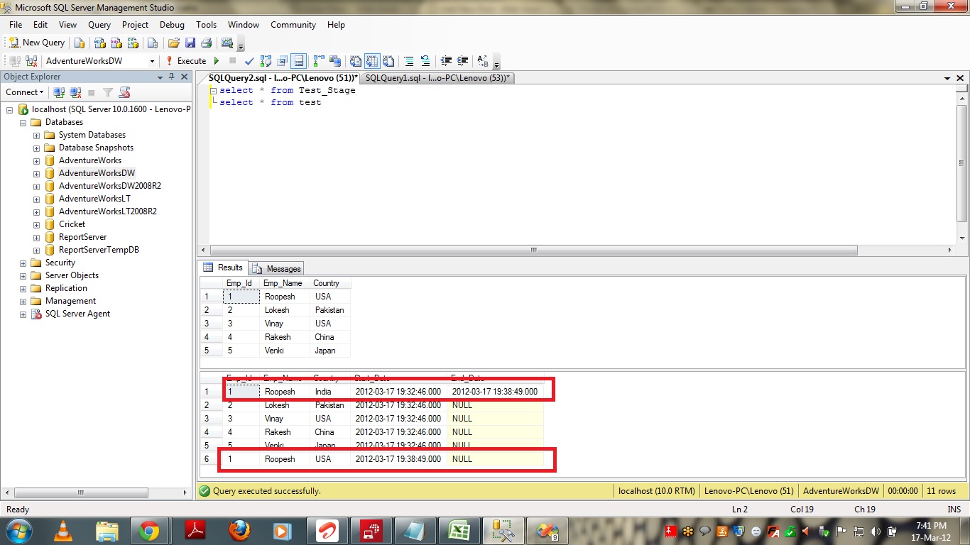 Now I inserted some records into my staging table i.e Test_Stage and PFB the scripts used –