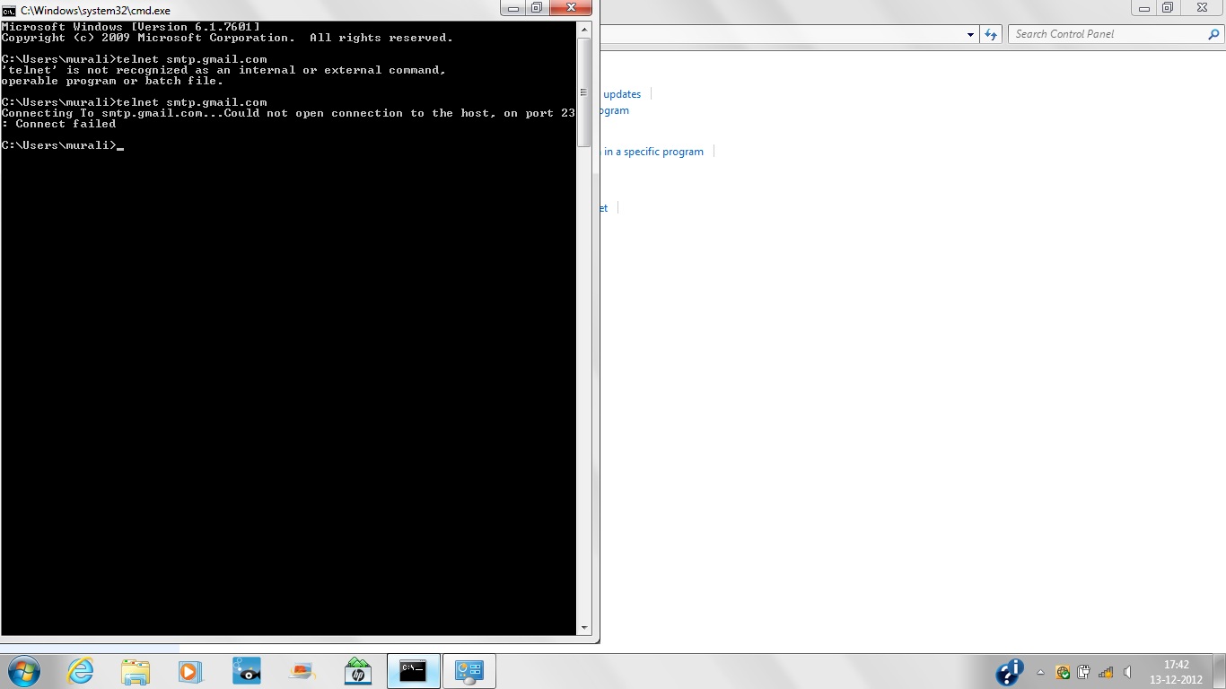 How to enable Telnet Client and Server ? Before going to that let’s talk a bit about what is TELNET and why we need it. If you are configuring DATABASE MAIL then you need to test the connectivity to the MAIL SERVER you use in the Database mail settings. To TEST the CONNECTIVITY to any mail server we use command prompt keyword TELNET. This service needs to be enabled to make use of the same. If the TELNET is not enabled the you will get the following error.