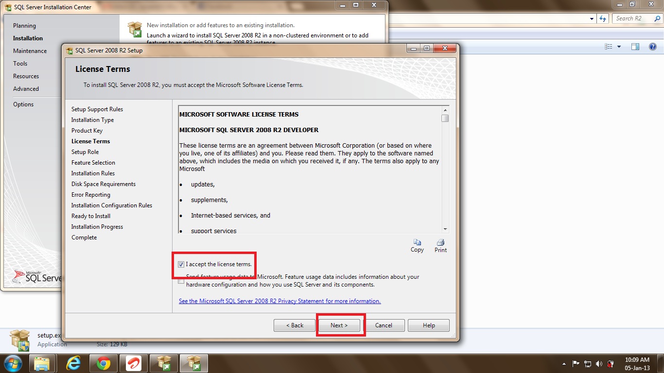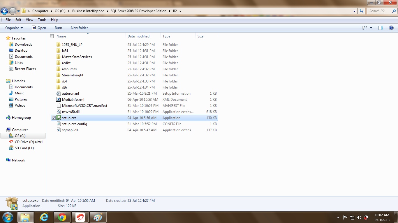 - Navigate to the folder where software is copied and double click on setup.exe.