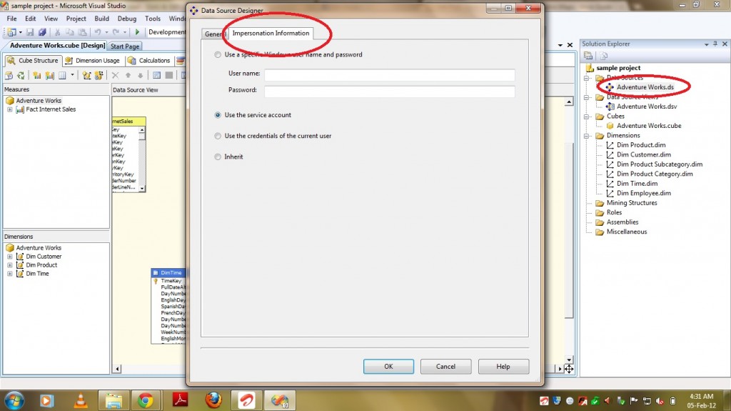 Now lets see where you can provide this impersonation information in SSAS Solution.