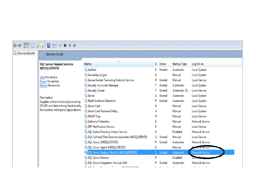 • User name – Type the domain and name of the user account to be used by the selected Analysis Services object. The domain and name of the user account uses the following format: