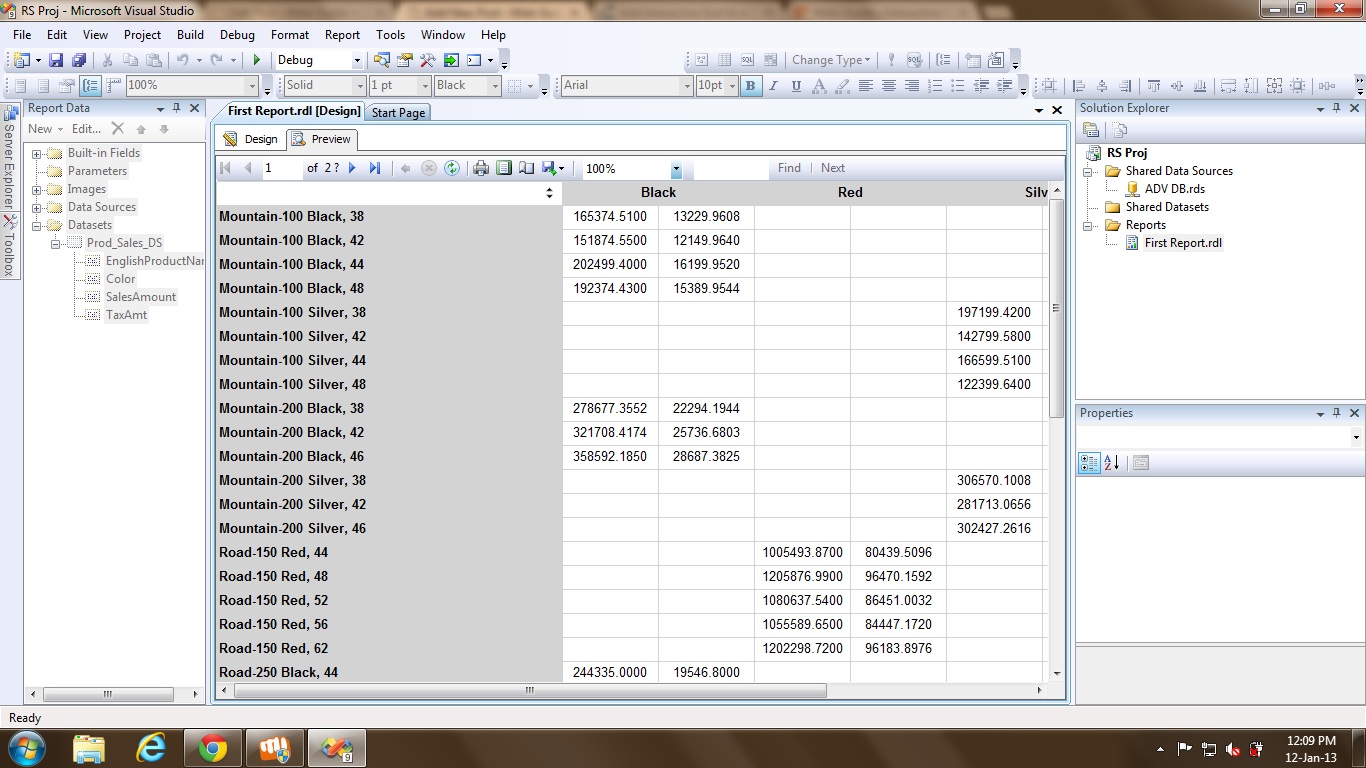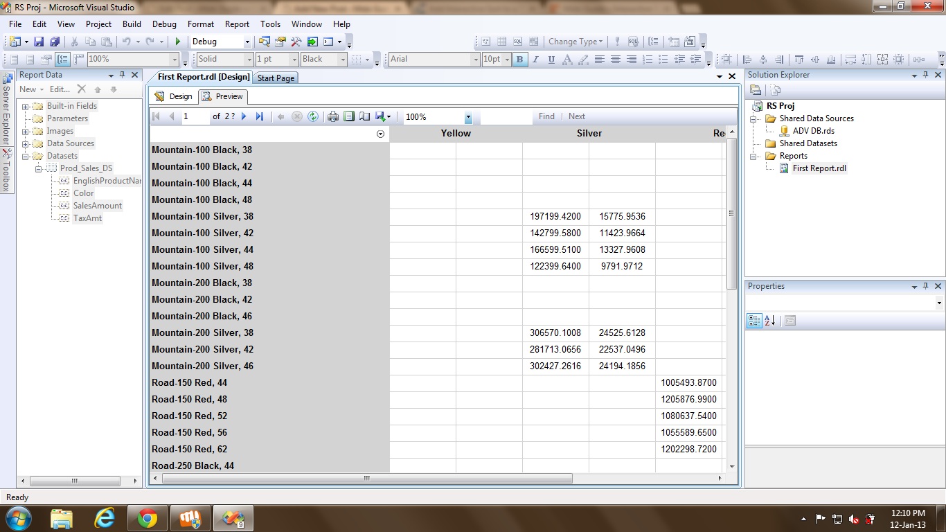 Interactive Sorting to a Row group of Matrix report is explained in last post and you can find the same here. In this post we are gonna discuss about Interactive Sorting to a Column group of Matrix report. In fact there is no extra steps involved in implementing Interactive Sorting to a Column group of Matrix report compared to applying Interactive Sorting to a ROW group of Matrix report. The only difference is “You should not apply this in column where we define column group”. To demonstrate the same I created a sample report with a Row group and Column group and PFB the preview of the same.