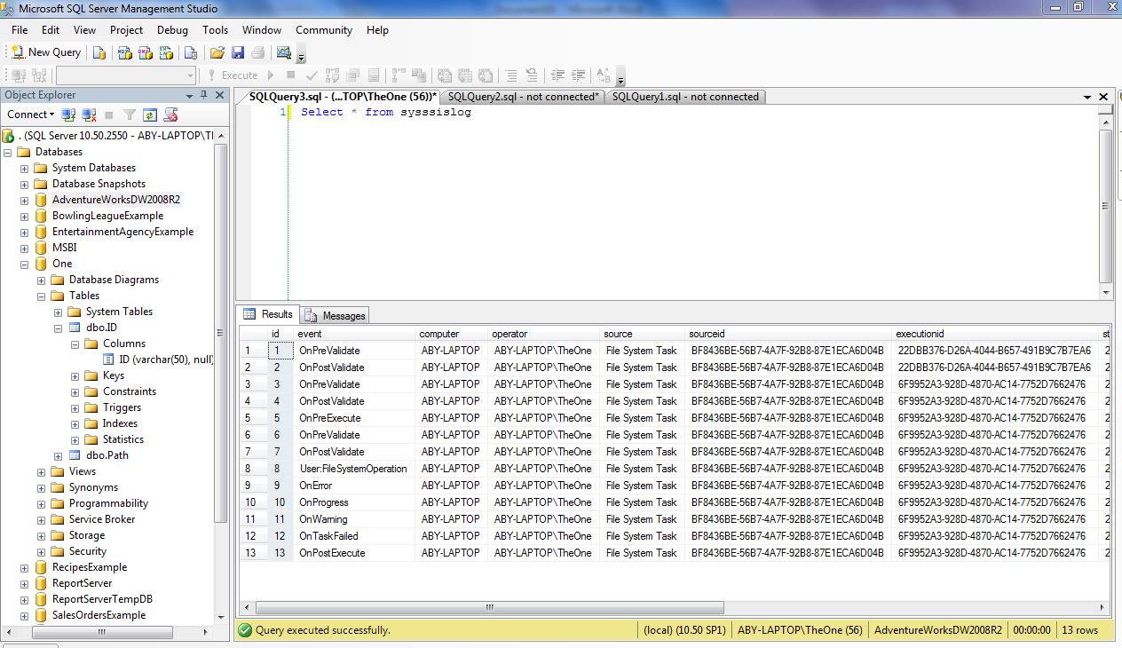 Select * from sysssislog