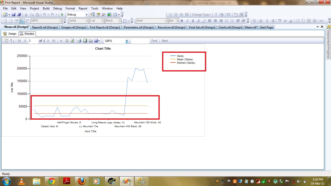 Repeat the last TWO steps and add MEDIAN to the Line chart. Now click on PREVIEW to preview your report. You can see MEAN and MEDIAN series added to your chart.