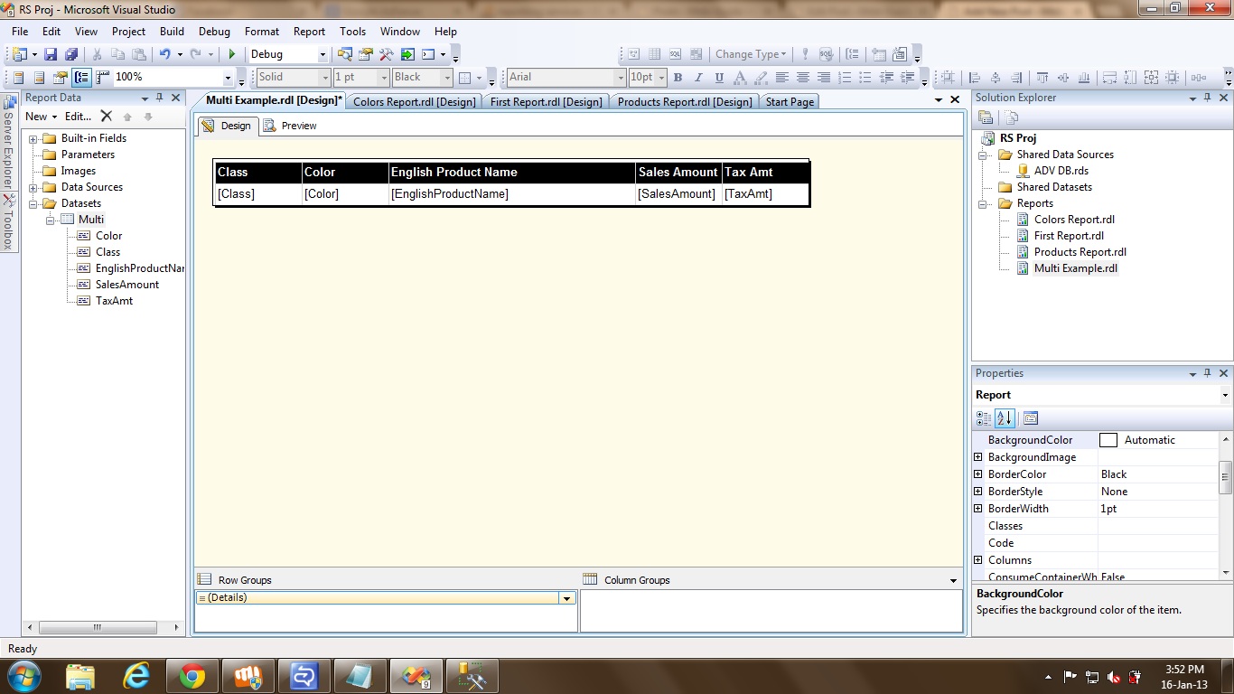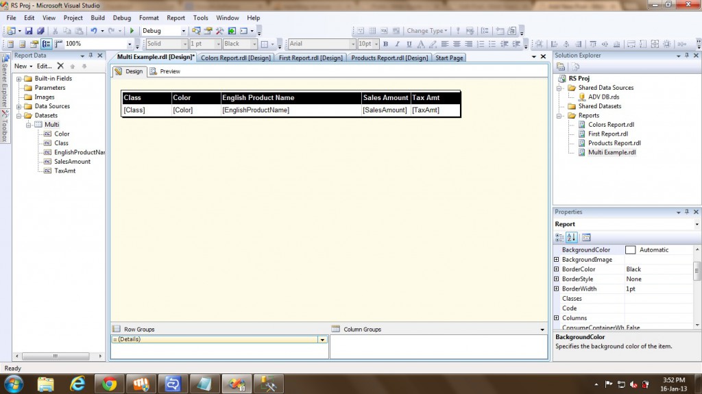 - Click on OK and your report is ready. Go to preview tab and test you report.