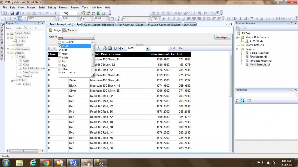 That’s it .. Your Report with multi valued Parameters passed to dataset which is created using SP is ready .. Hope you understood the concepts .. Happy Coding !!