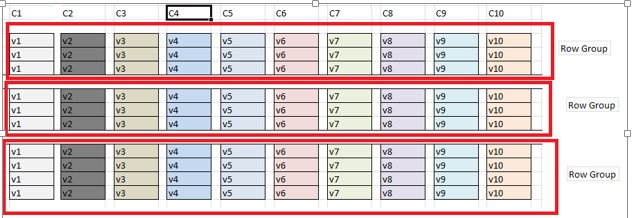 If we store data in column format, suppose we store 10 million rows, we cannot store all 10 million rows of column C1 as storage unit. What we do is we break those rows into smaller chunks, which we call have as row group.