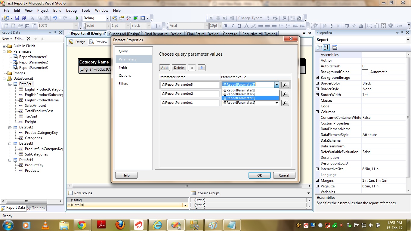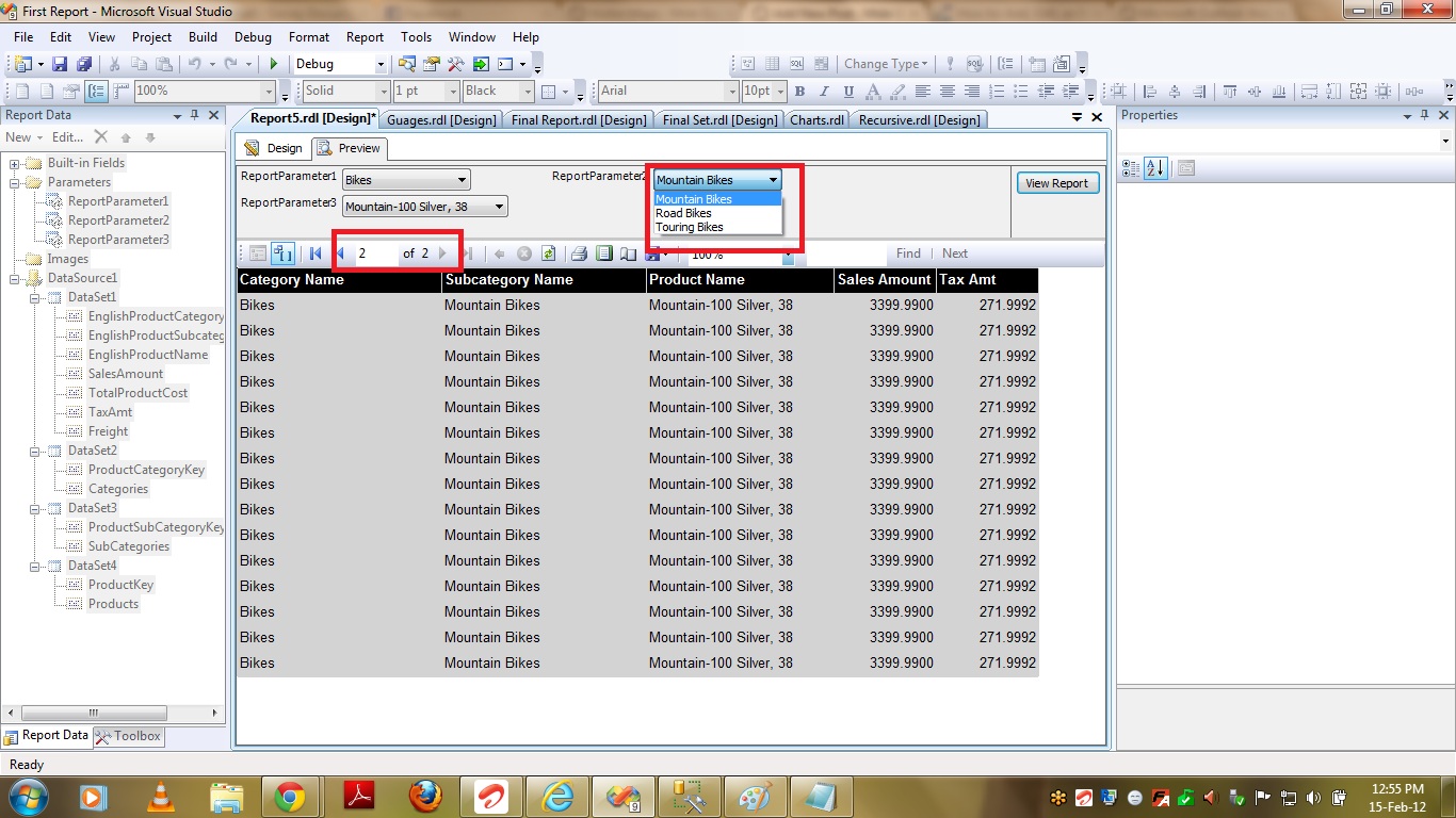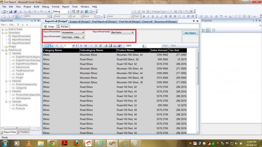• Now all the report parameters are ready. Here the sequence of parameters are as follows – Category –> Sub Category–> Product and you can see the same in the below given screenshot.