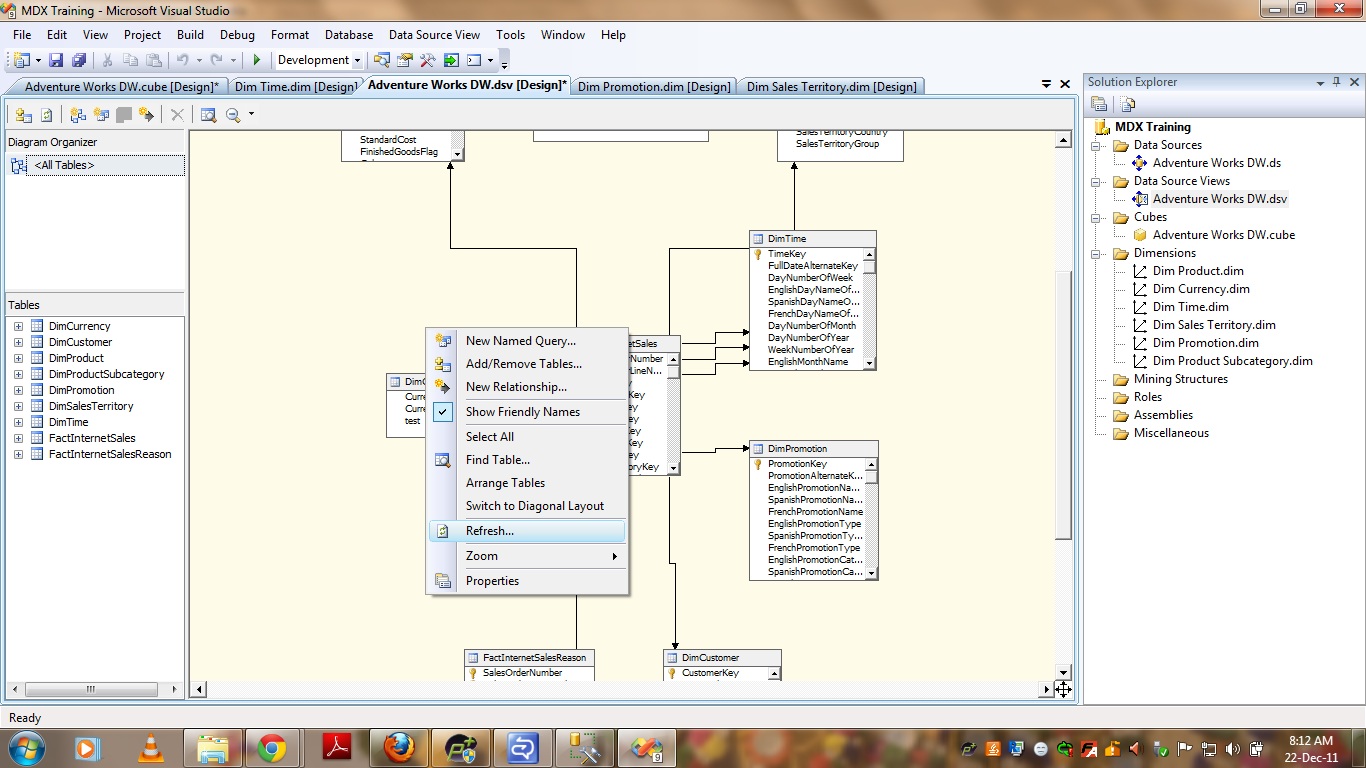 Lets have a small discussion about one of the most important options available in SSAS Data Source View i.e “Refresh”. I have never given or taken an interview with out discussing about this option. This is such an important option available in DSV. When ever there are changes occured in the schema of the underlying data source then yu can use REFRESH option in dsv to incorporate all the changes to the tables in the DSV. Refreshing a DSV updates the whole data source view.