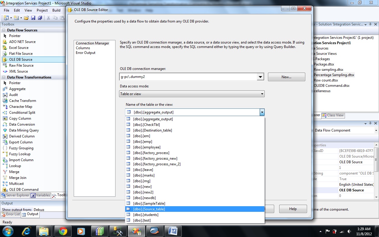 • Select OLE DB data source from data flow sources and drag and drop it in the data flow.