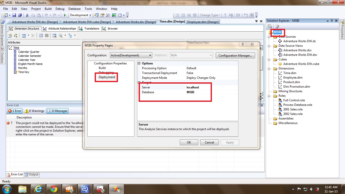 - I have given “LOCALHOST” which means that the SSAS server is situated in my local computer which is correct. You have to make sure the server name is given correctly.