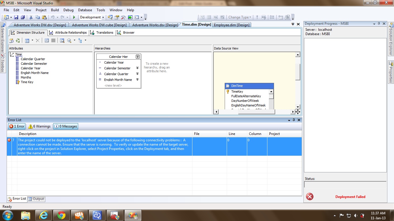 If you are reading this post to find out the error then I can say you are NEW to SSAS. Most of the error will face this error while they practice in their personal computers and the same will not be faced when they work in any project in company because company will make sure that the server is always running. From the error message it is clear that the problem is with the connectivity to SSAS server. Connectivity problem to anything will occur only when one of the following is true.
